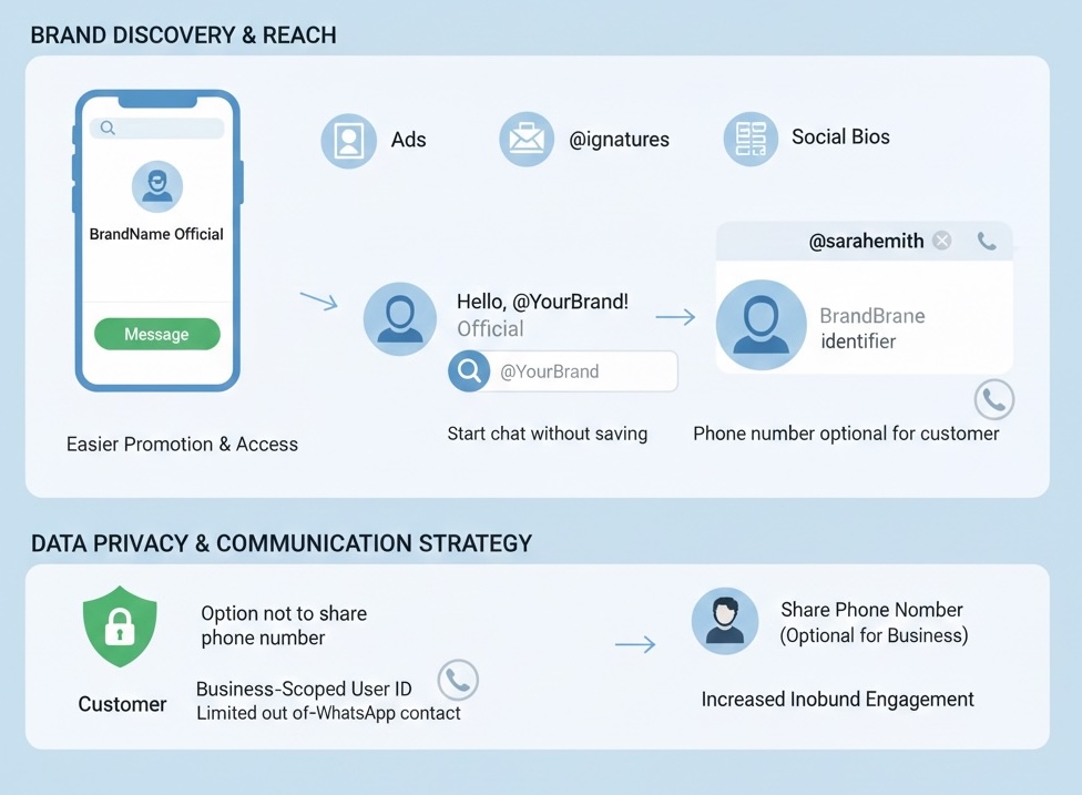 Users and businesses will be able to message each other using usernames without first saving a phone number to their contacts. Phone numbers will still exist underneath the system, each tied to a specific username, but they will no longer be the default visible identifiers.