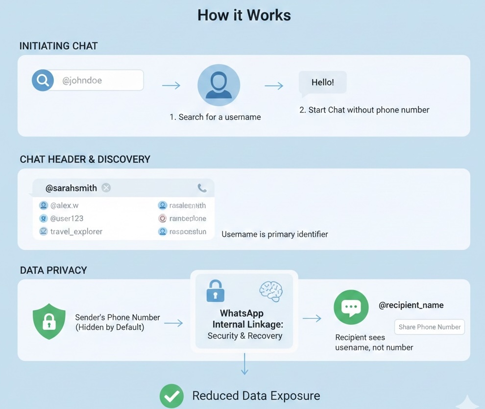 With usernames implemented, the recipient of a WhatsApp message will not automatically see the sender’s phone number unless the sender decides to share it. WhatsApp maintains the link between username and phone number internally for security, abuse prevention, and account recovery. This feature is also expected to reduce unnecessary exposure of personal data.