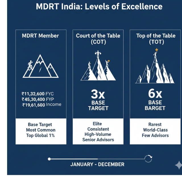 In India, MDRT qualification is a major achievement for life insurance agents. MDRT status signals that an agent is among the top performers globally and locally in terms of insurance sales, client service, and professional excellence.