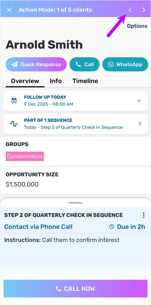 We’re excited to introduce Action Mode on the Privyr mobile app! ✨ This gives you a carousel view of all clients with pending actions today.