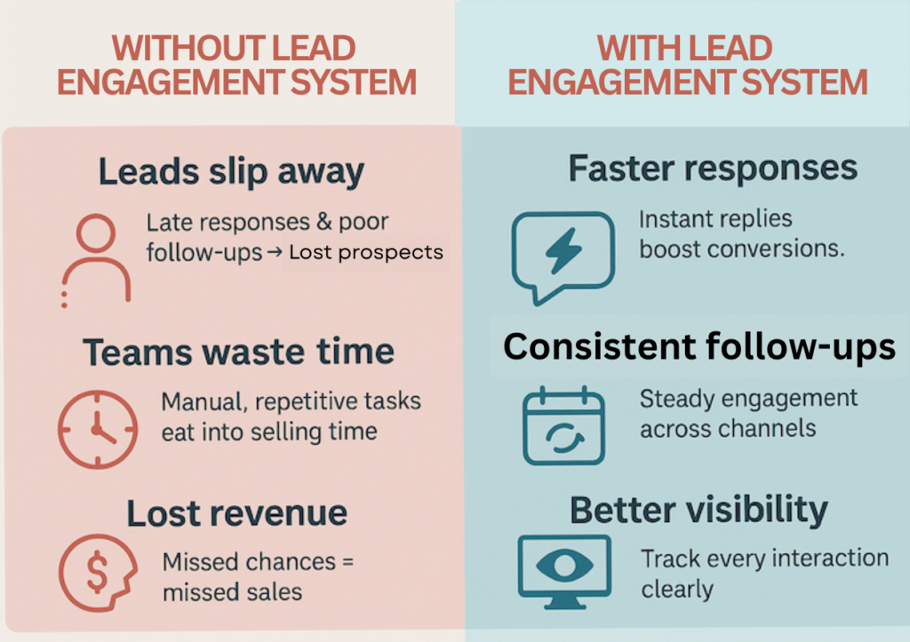 If you don’t have a structured way to manage and engage your leads, the results can be costly. Without a proper lead engagement system: