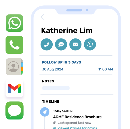 Once you’ve installed Privyr on your smartphone and logged into your account, you first need to integrate it with lead sources (such as Facebook Ads, WordPress forms, Google Ads, etc.). Now, whenever you receive new leads online, Privyr automatically alerts you of that in real-time. You can then contact new leads on popular messaging apps like WhatsApp, SMS, or iMessage in one tap with auto-personalised messages right away. Moreover, Privyr also manages each of your leads within the app, arranging their status, follow-up dates, and history.