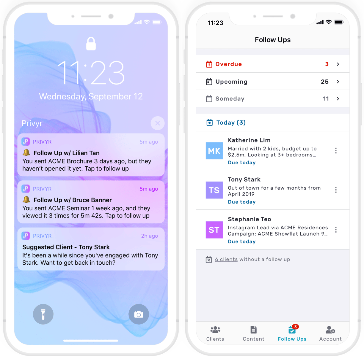 Easily import contacts from your phonebook, website, or Facebook Lead Ads. Manage your leads and clients with notes, follow up reminders, client timelines, trackable PDF files, and much more.