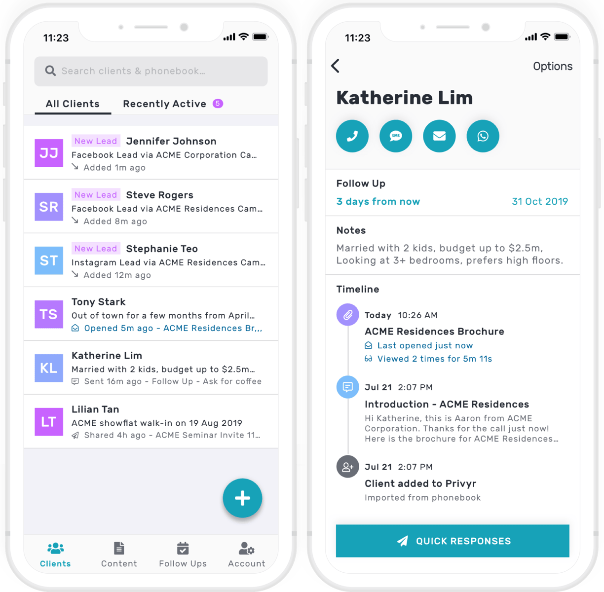 Privyr is a mobile CRM built for sales professionals who run their businesses from their phone. It works with SMS, email, WhatsApp, and other popular chat apps.