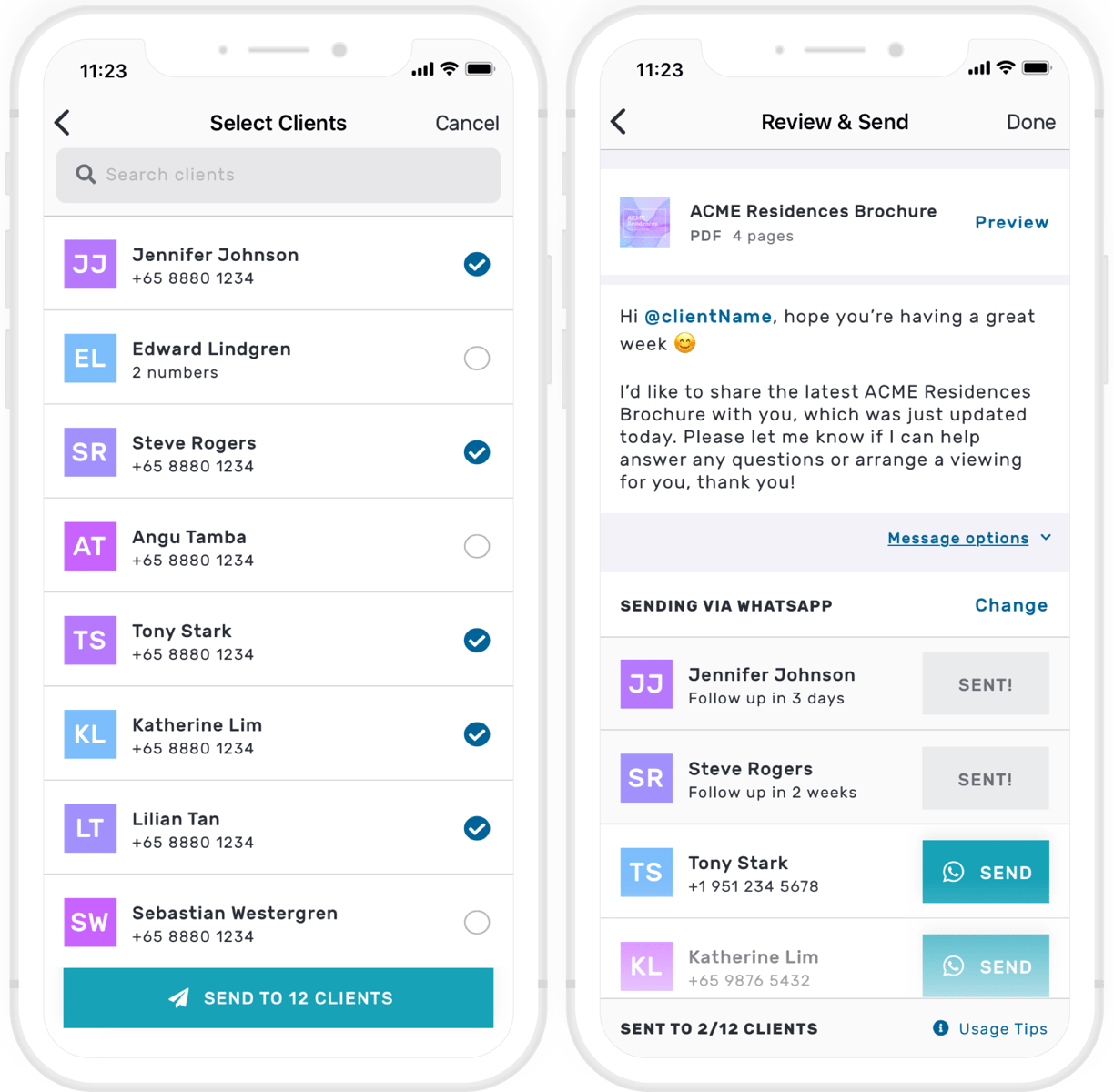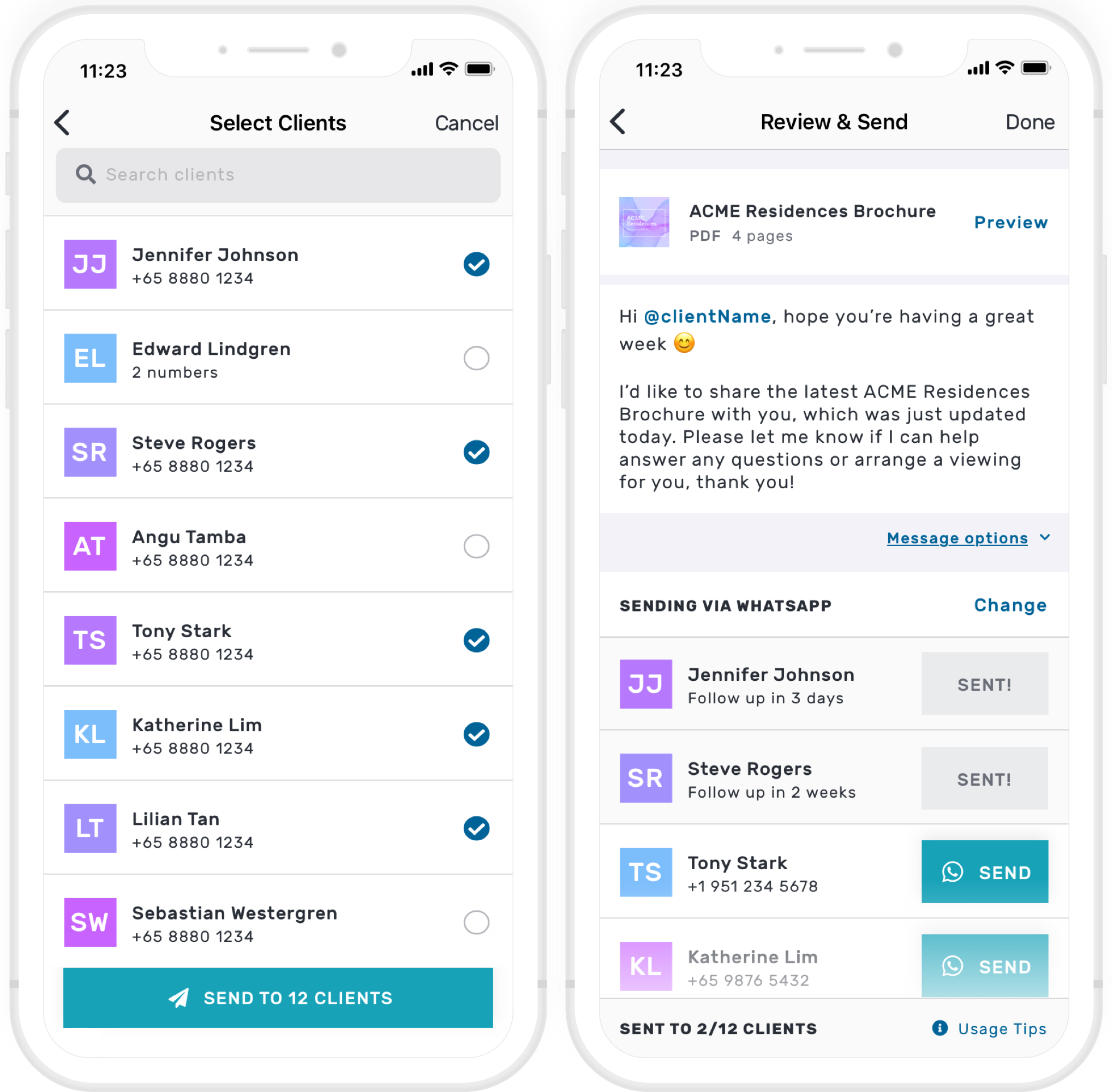 Bulk send auto-personalised messages & files, manage your leads, track interest, and follow up like a pro.