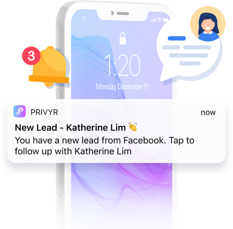 Get your leads delivered instantly via the Privyr app and email. Tap to immediately view the lead's contact information, custom answers, and ad campaign details.