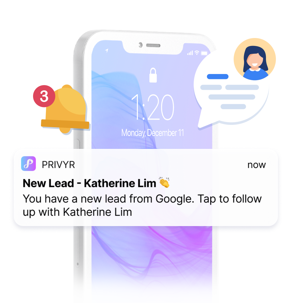 Get your Google Ads Leads delivered instantly via the Privyr app and email. Tap to immediately view the lead's contact information, custom answers, and ad campaign details.