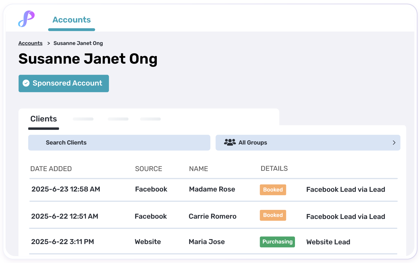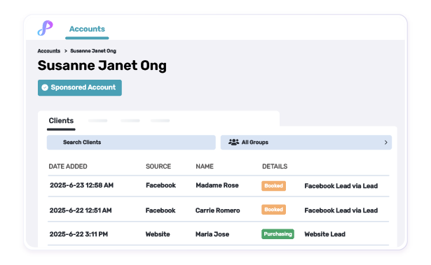 Automatically send leads from Facebook, Google, your website, TikTok and other lead sources to your clients.