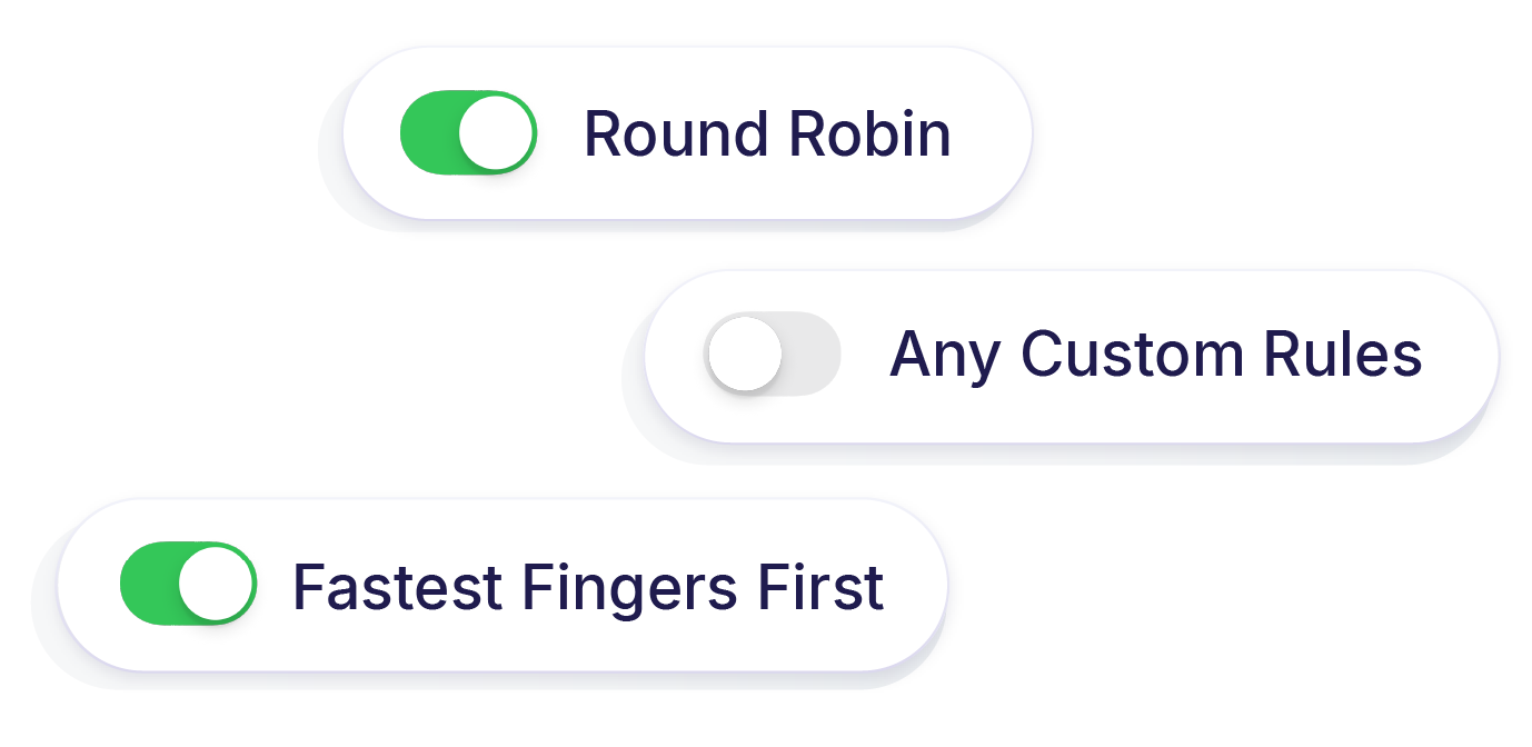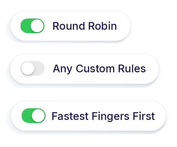 Work in any setup: Round Robin, Fastest Fingers First, etc.