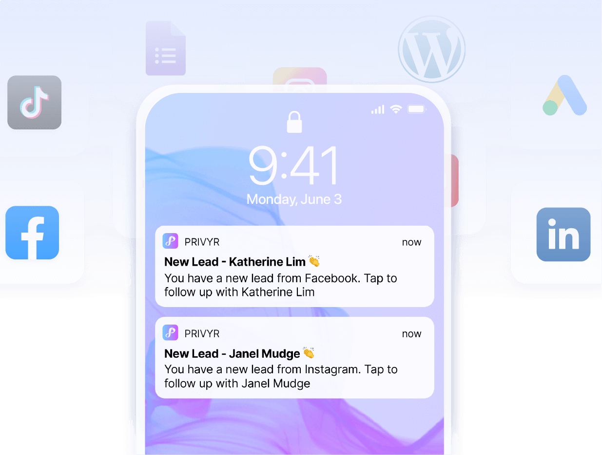 Privyr integrates directly with popular lead sources like Facebook Ads, LinkedIn, Google Forms, and even your websites. No coding or third-party tools required.