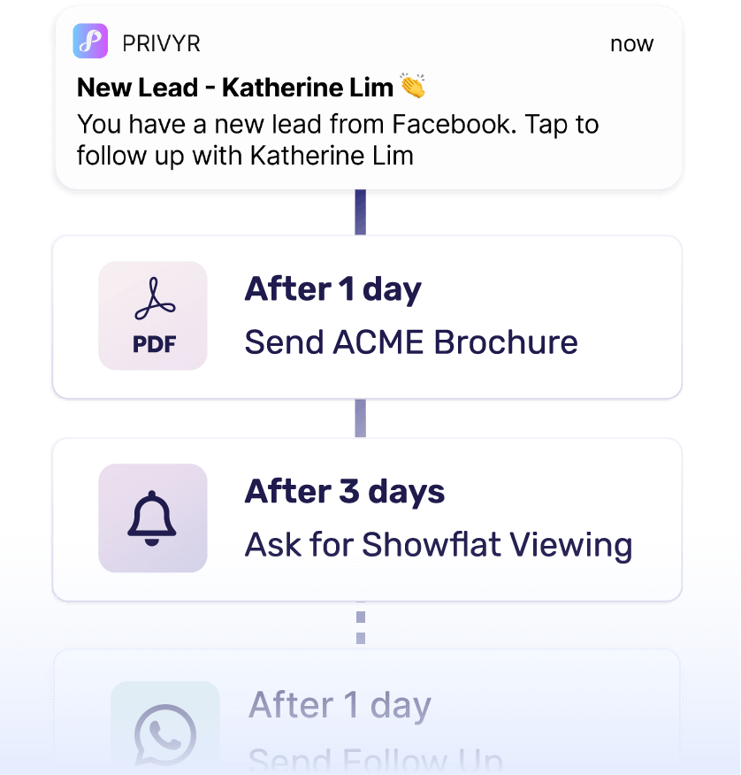 Privyr automatically reminds you to perform the next step in one tap.