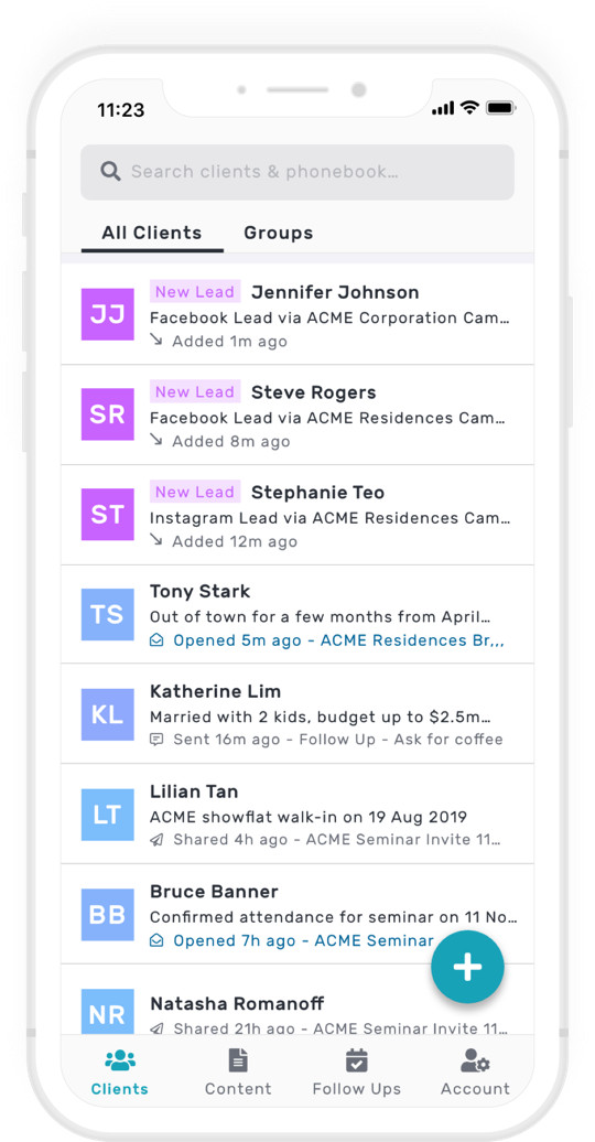 Manage your new leads and existing clients with notes, follow up reminders, client interaction timelines, and much more. Your relationships are at your fingertips with Privyr's lightweight mobile CRM.