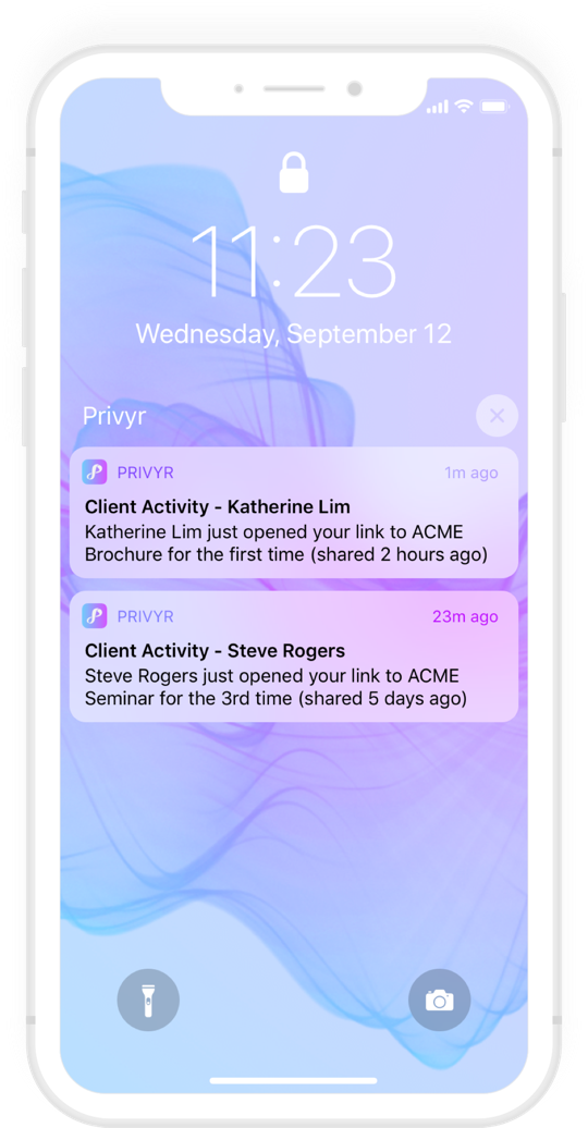 With Privyr, know exactly when leads view your PDF files and content with instant alerts, view counts, and time spent - all attributed to individual contacts.