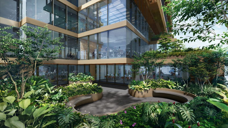 一座 13 层的办公室 + 零售裙楼、2 栋 19 层的公寓和一个 3 层的地下停车场。