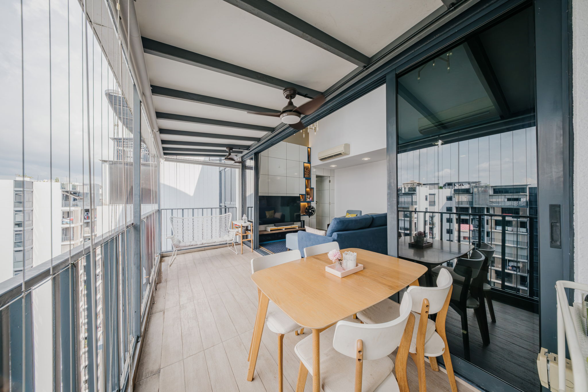 This double-storey penthouse features a modern, functional layout with soaring double-volume ceilings, generous bedrooms, and an open-plan living and dining area bathed in natural light. A dedicated utility room adds flexibility for families, helpers, or work-from-home needs. Step outside onto your private rooftop terrace, perfect for weekend gatherings, sunset yoga, or simply unwinding under the stars with panoramic views of the city and lush greenery.
